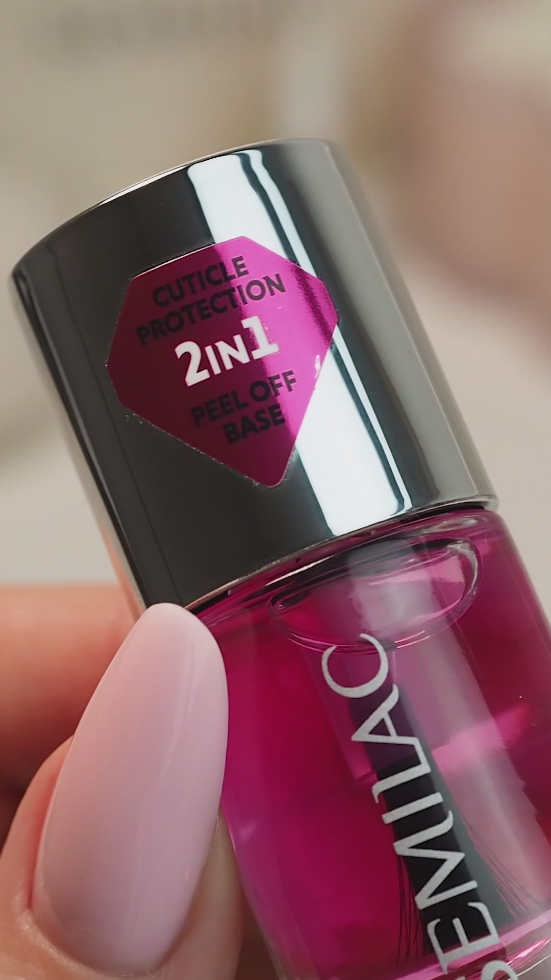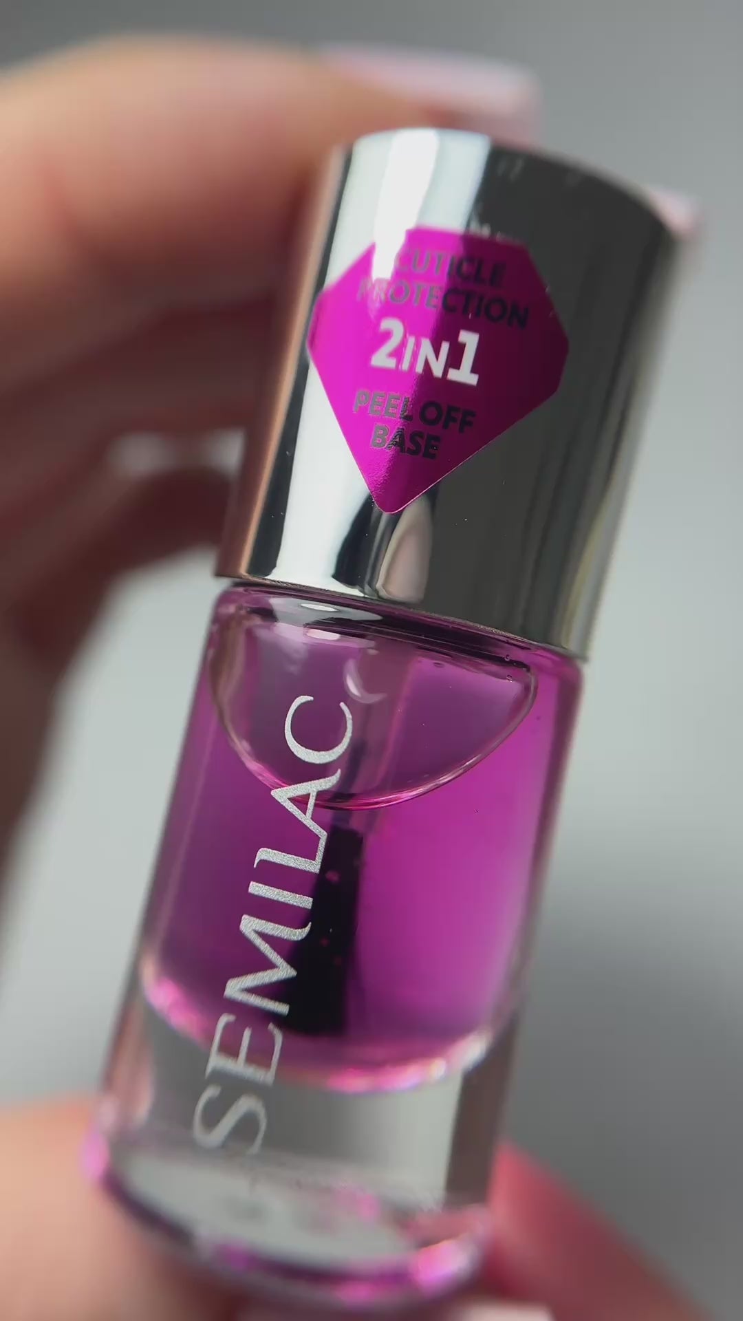 Peel-off Base – Use as a base coat under gel polish or classic nail polish. Apply a thin layer to a prepared nail plate and let it dry before continuing with your manicure. For hybrid polish application, we recommend using Semilac Base—a flexible base that facilitates easy removal. Depending on the condition of your nails and the products used, durability lasts between 1-3 days