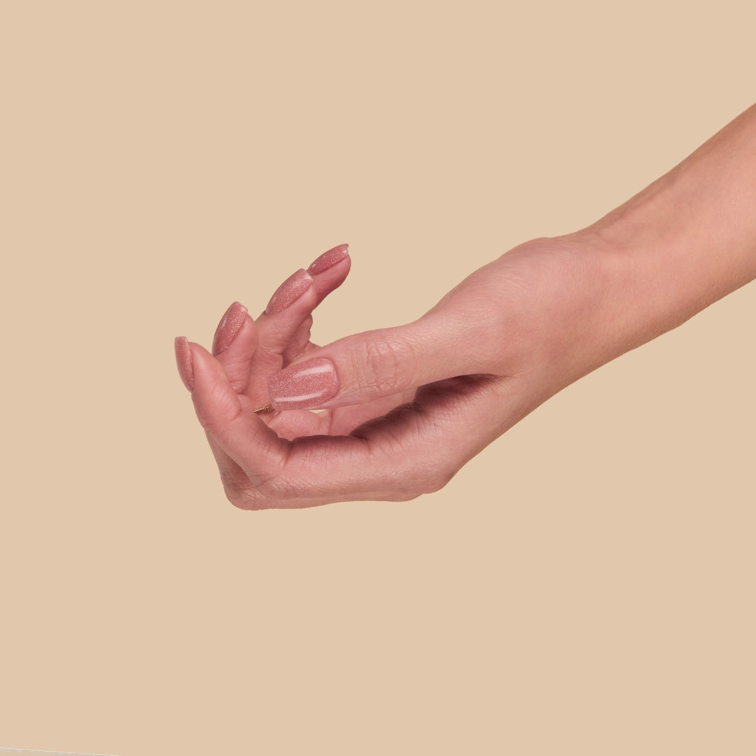 Inspiring beige gel polish in a caramel shade, adorned with shimmering silver particles that fantastically, but discreetly reflect the light. This makes your manicure begging for a big exit! Will you let him invite you to the ball? Or maybe you prefer to conquer the kitchen floor today? It doesn't matter - in all circumstances you will shine and look delicious. Paint a unique manicure with this gel polish and enjoy your everyday life. Best with friends!