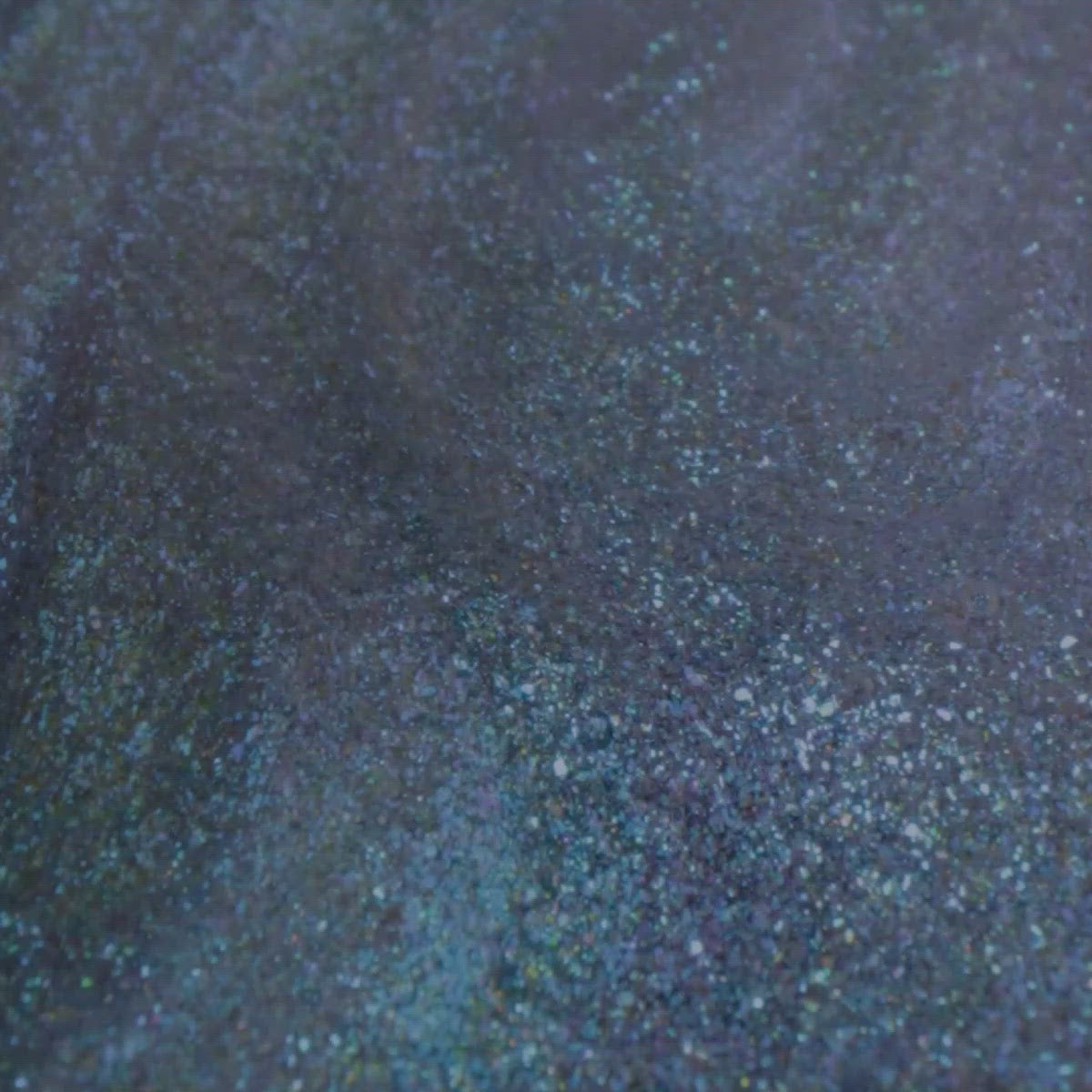 Shining particles in the color of holiday sky blue embedded in a shiny formula that does not require wiping.
