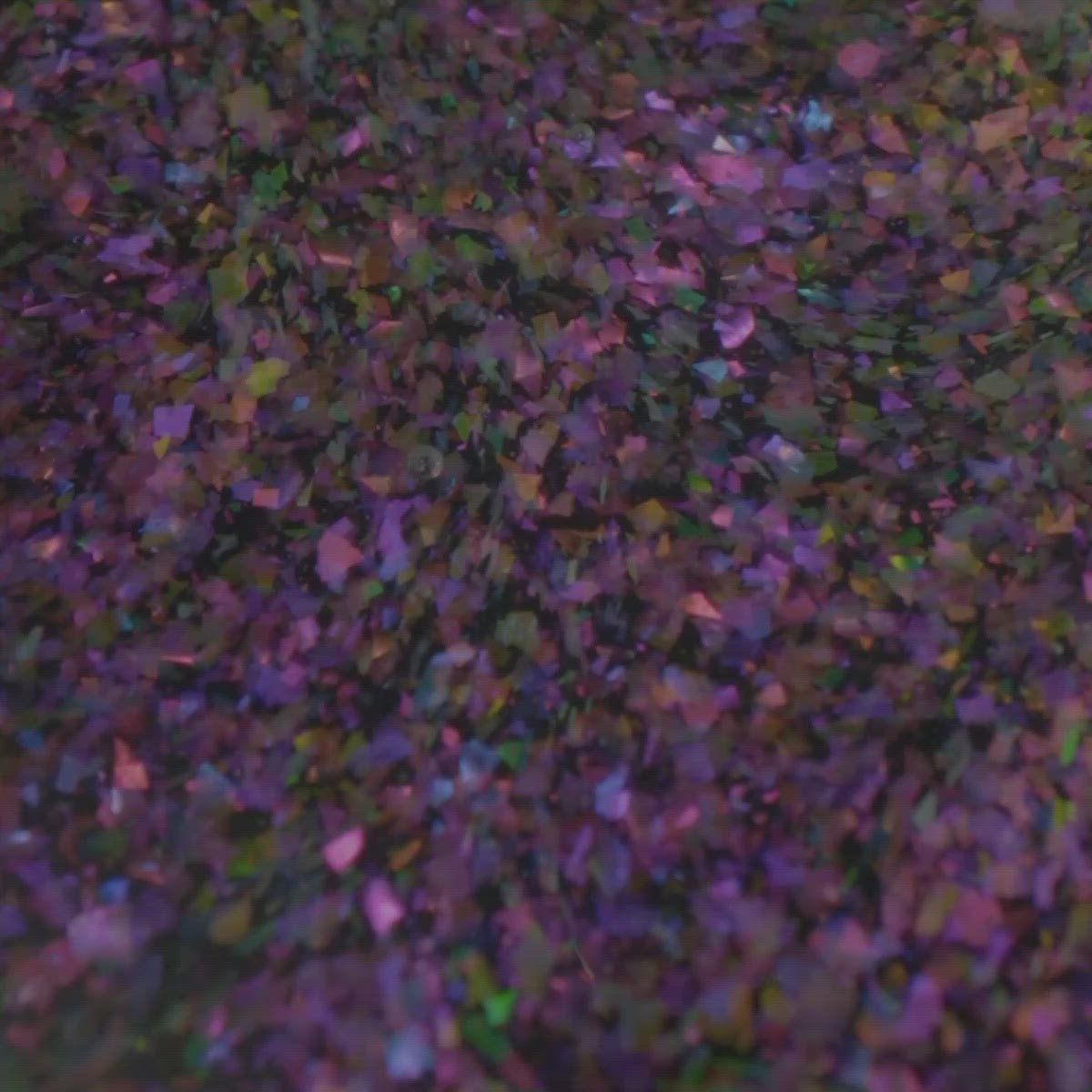 Thousands of shimmering petals of various sizes in a perfect duo of violet-pink colours embedded in a shiny formula that does not require wiping.
