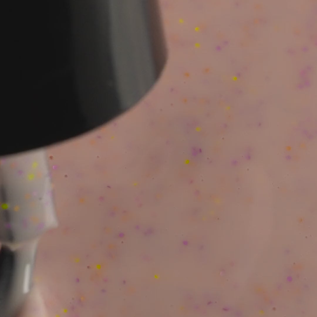 Candy Butter is a whitened, milky butter colour with a pinch of sweet lemon, in which we have immersed the first spring rays of sunshine in the form of neon-candy particles in a mix of orange, purple and lime colors. It is a subtle combination of spring awakening with a pinch of holiday plans.