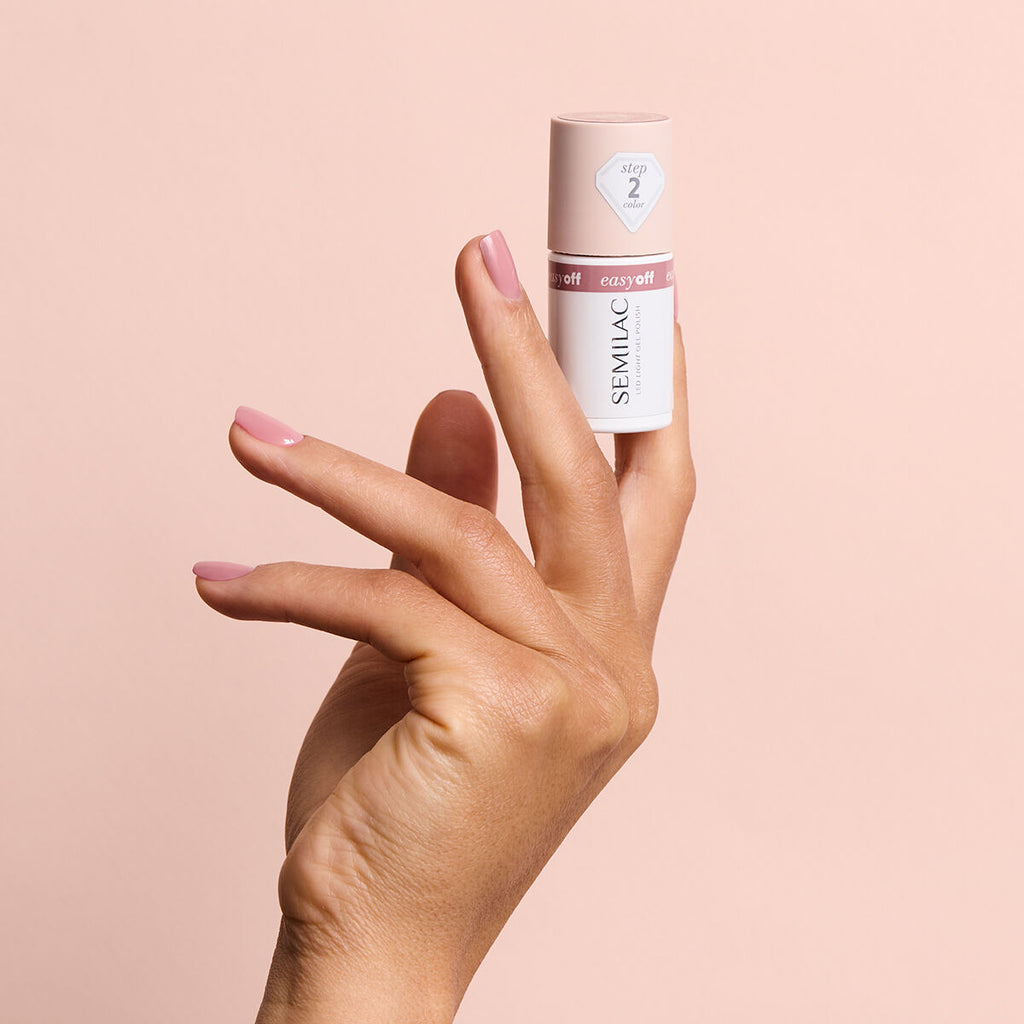 Step 1: Apply a thin layer of Semilac EASY OFF base. Cure under a UV LED lamp for 1 minute.