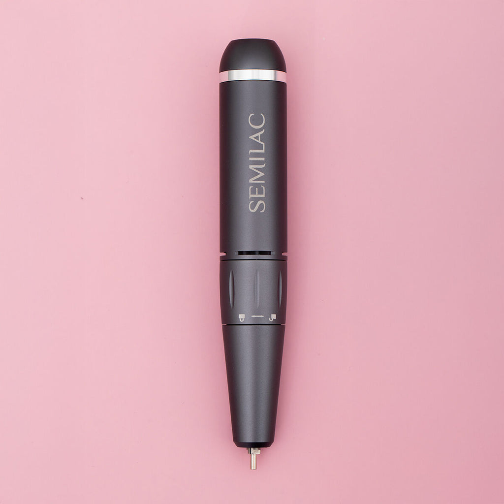 The Mini Pen nail drill from Semilac is an easy solution for quick and safe removal of gel polish manicure, gel and acrylic products. It is a high-quality compact manicure device, thanks to which you can easily work on cuticle area, prepare the nail plate, and remove gel polish, gel and acrylic gel manicure. Thanks to its compact dimensions and low weight, you can make a manicure anywhere and anytime. A simple way to charge using any USB socket and an intuitive way of using it will make it easier to work in conditions convenient for you, both in your home living room or during a trip with friends. The Mini Pen nail drill is enough to connect to any USB power socket, turn it on using the R / F button, which is indicating the direction of rotation, and use the knob to smoothly set the speed of the device. The high-class device, despite its small size, guarantees smooth speed control up to 30,000 RPM and the comfort of quiet, vibration-free operation. The Mini Pen nail drill is a perfect solution for people starting their adventure with gel polish manicure.